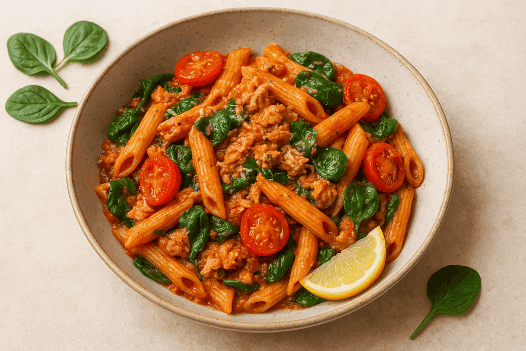 Villámgyors, könnyű és mégis fantasztikusan ízes tonhalas-paradicsomos tészta, amely tökéletes választás edzés után vagy egy rohanós hétköznap estéjén.